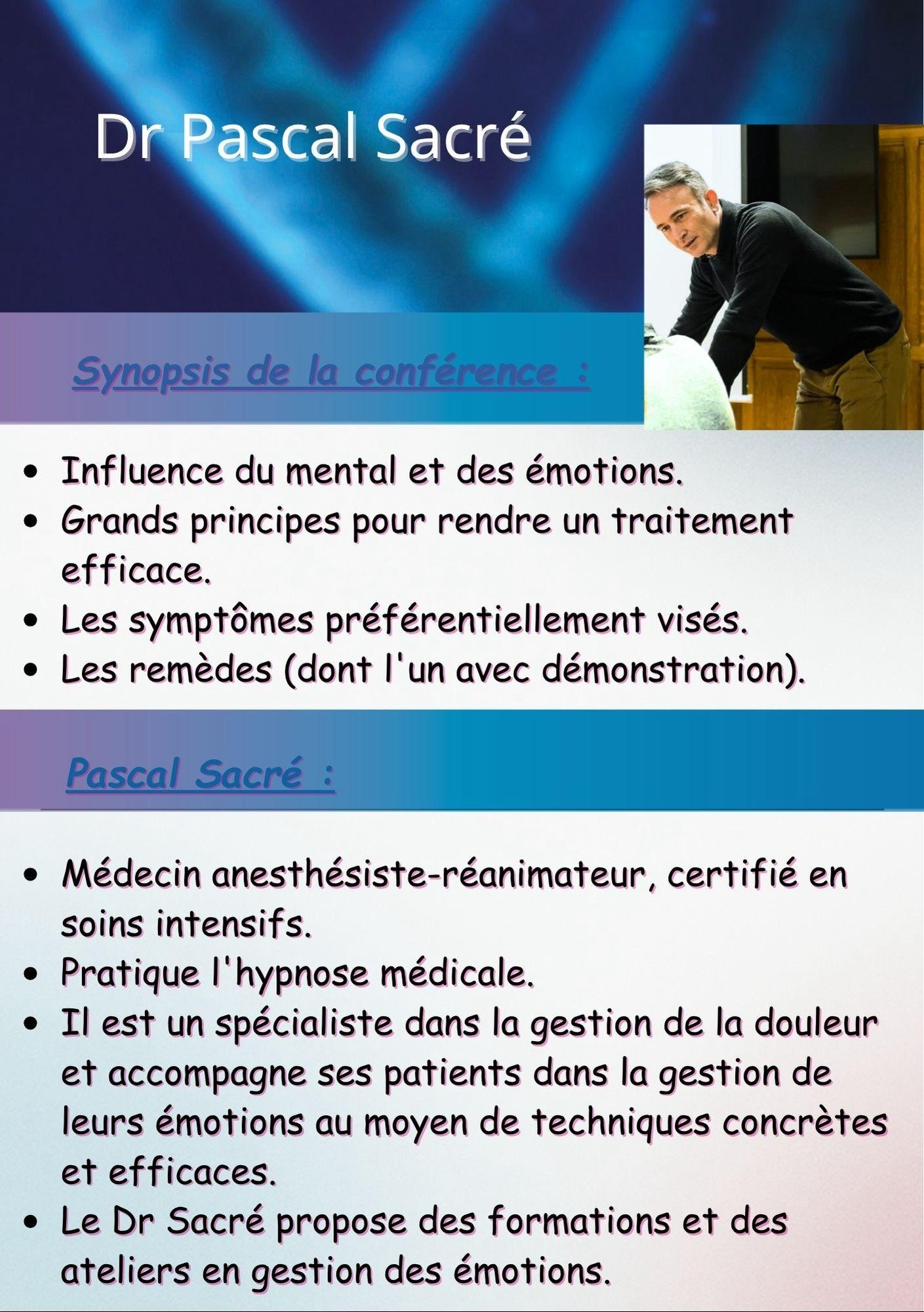 Pascal Sacré : Prévenir des infections hivernalePrévention Santé Louvain la neuve Au sein des femmes Conférence du Dr. Pascal Sacré Le samedi 15 novembre à 19H30 Inscription :